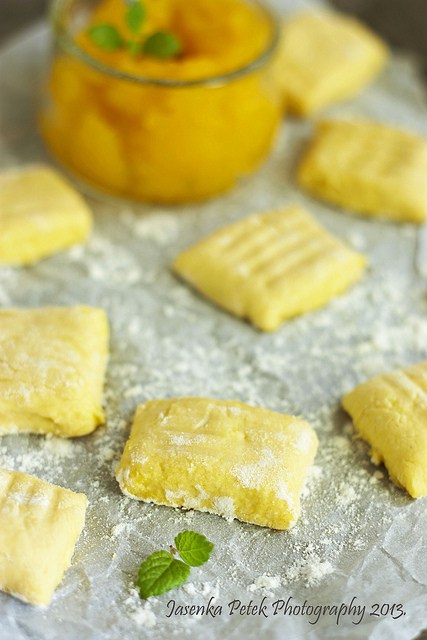 - U propasiranu bundevu dodajte žumanjak, sol i muškatni oraščić. Promiješajte pa dodajte brašno. Ovisno koliko je bundeva vodenasta toliko će vam trebati brašna. Nemojte pretjerati sa brašnom da ne dobijete gumenaste njoke. Pobrašnite površinu na kojoj ćete zamijesiti tijesto. Tijesto ljepljivo, ali takvo treba i biti. Podijelite ga na 4 dijela i od svako dijela napravite dugačku, tanju kobasicu. Režite njoke u obliku kocki, ukoliko je potrebno pobrašnite ruke I površinu da se njoki ne zalijepe, oštrim nožem i slažite ih na pobrašnjeni tanjur i stavite u hladnjak do kuhanja. Zakuhajte lonac slane vode i pažljivo njoke stavite u posudu, kuhajte par minuta dok ne isplivaju na površinu. Ocijedite ih i poslužite sa umakom.