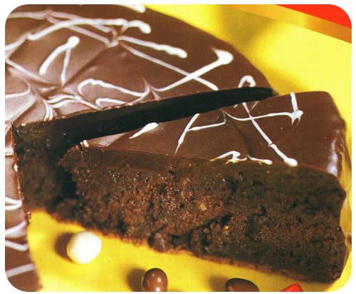 Rastopite čokoladu i maslac na pari. Pomiješajte krupicu, kakao, začine i narančinu koricu te ih dodajte u rastopljenu čokoladu. Mikserom tucite jaja sa šećerom dok se ne utrostruče. Pri kraju u jaja dodajte prašak za pecivo, a zatim sve polagano umiješajte u čokoladnu smjesu. Ulijte sve u pripremljeni kalup i pecite oko 45 minuta. Ostavite da se potpuno ohladi prije glaziranja.