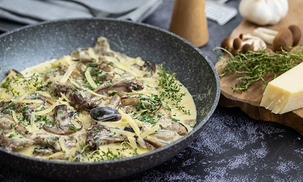 Potom ulije slatko vrhnje, promiješajte i pustite da kratko prokuha. Popaprite i vratite kotlete u tavu.